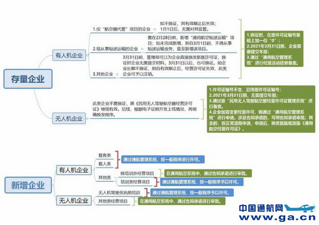 2.存量無(wú)人機(jī)企業(yè)。已于2020年12月31日(含)前 取得《民用無(wú)人駕駛航空器經(jīng)營(yíng)許可證》的企業(yè)暫無(wú)需申領(lǐng) 新版《通用航空經(jīng)營(yíng)許可證》,在新版許可證電子證照上線 并完成證照換發(fā)前,其《民用無(wú)人駕駛航空器經(jīng)營(yíng)許可證》 持續(xù)有效。