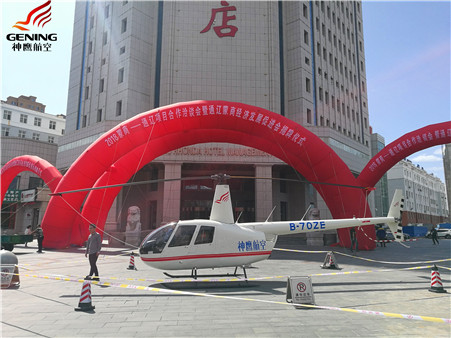 2018年9月6日,2018蒙商-通遼項目合作洽談會暨通遼蒙商經(jīng)濟發(fā)展促進會揭牌儀式在內(nèi)蒙古通遼市榮達酒店舉行。通遼市神鷹通用航空有限公司作為會員單位參加了此次活動?;顒又?,展示了公司自主研發(fā)的先鋒一號無人機和新引進的美國羅賓遜R44直升機,受到了與會領(lǐng)導(dǎo)與嘉賓的一致好評。
