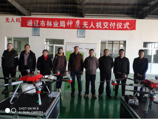 2019年3月11日,“神鷹”植保無人機交付儀式在通遼市神鷹飛機制造有限公司舉行,通遼市林業(yè)局森林病蟲害防治檢疫站敖特根、李仁貴等領(lǐng)導(dǎo),以及通遼市神鷹通用航空有限公司總經(jīng)理司治莊、副總經(jīng)理齊洪峰、通遼市神鷹飛機制造有限公司副總經(jīng)理魏建東參加了交付儀式。