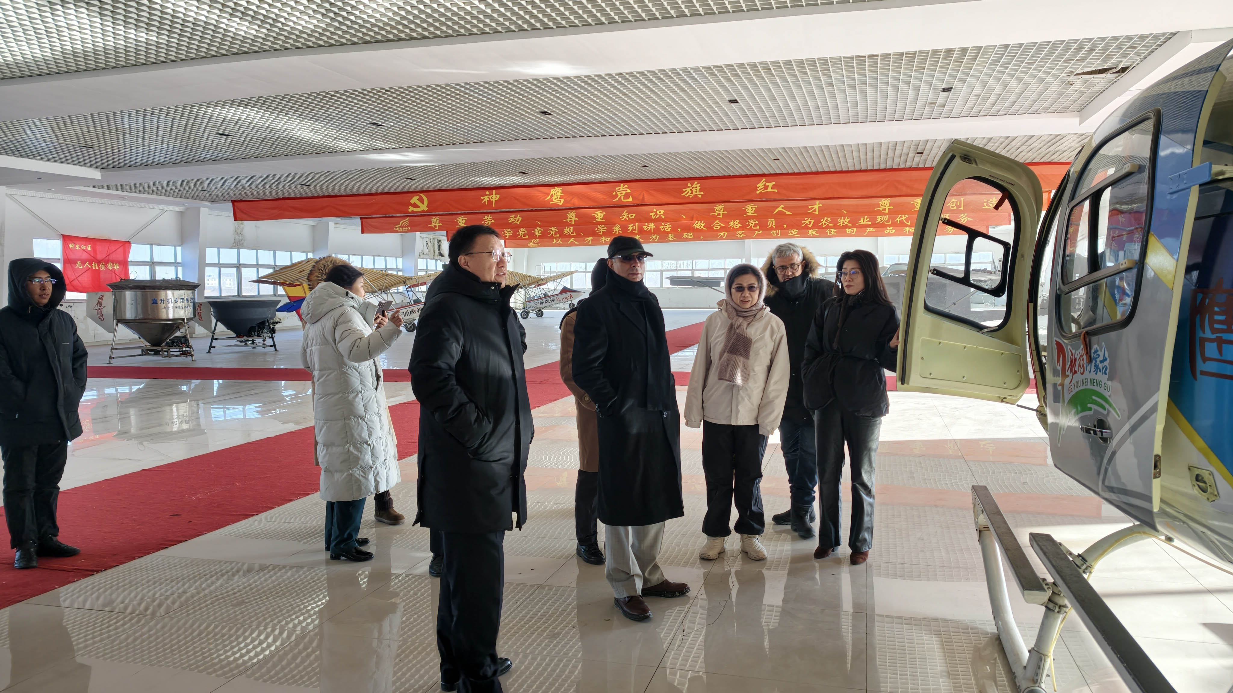 當(dāng)天上午,納辛航空董事長(zhǎng)阿巴西?阿米尼一行到訪(fǎng)內(nèi)蒙古神鷹航空集團(tuán)總部。在神鷹航空集團(tuán)董事長(zhǎng)邱志剛、總經(jīng)理孫學(xué)慧及公司核心管理人員的陪同下,參觀了公司飛機(jī)展廳與文化墻,并觀看了企業(yè)宣傳片,深入了解神鷹航空的發(fā)展歷程、企業(yè)實(shí)力與業(yè)務(wù)布局。