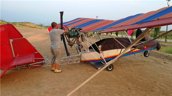 2018.7.13至2018.7.25日,通遼市神鷹通用航空有限公司在奈曼旗白音塔拉鎮(zhèn)寶古圖沙漠旅游區(qū)進行飛播。圖為公司A2C飛機進行飛播。